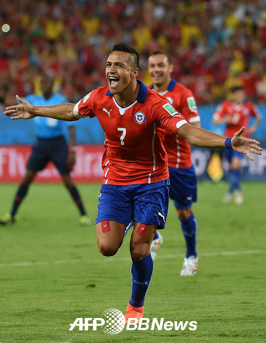 전반 칠레 알렉시스 산체스가 골을 성공시키고 환호하고 있다.