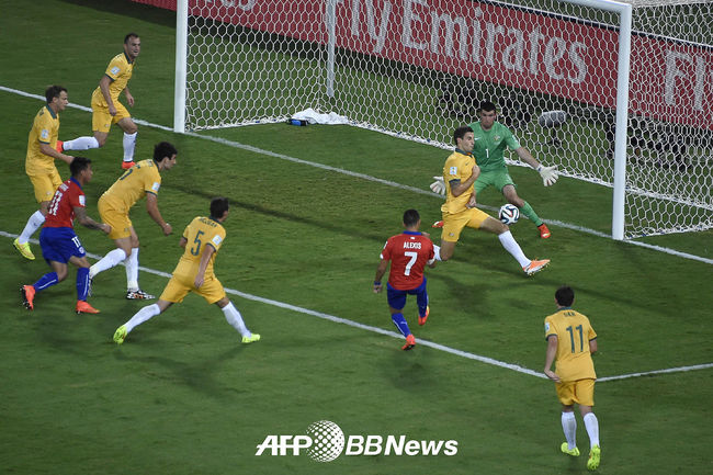 [OSEN=사진팀] 14일(한국시간) 브라질 쿠이아바의 아레나판타날에서 B조 칠레와 호주의 경기가 열렸다.