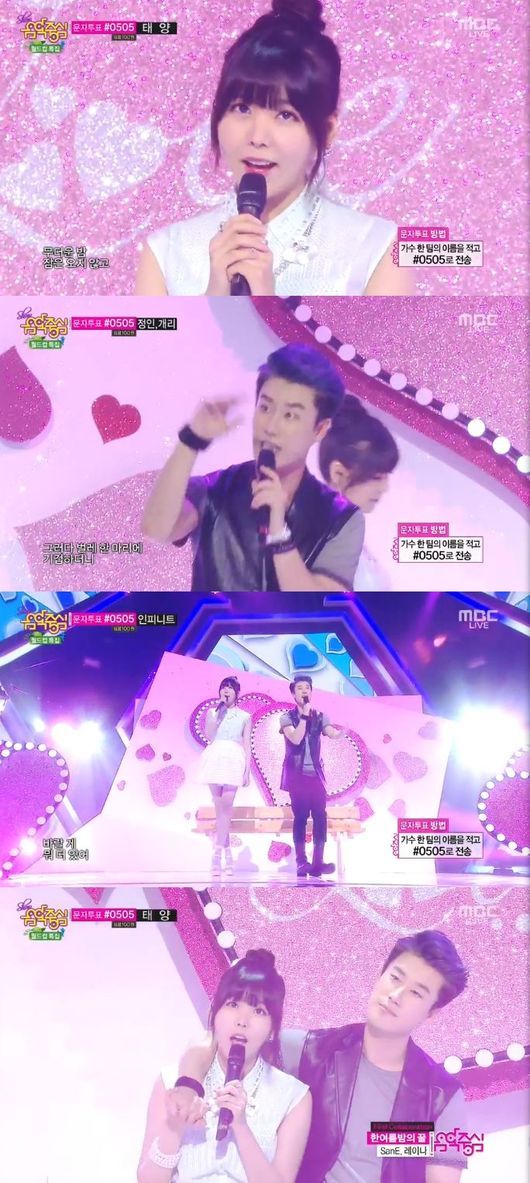 산이-레이나는 14일 오후 방송된 MBC '쇼!음악중심'에서 '한 여름밤의 꿈'의 무대를 선보였다.