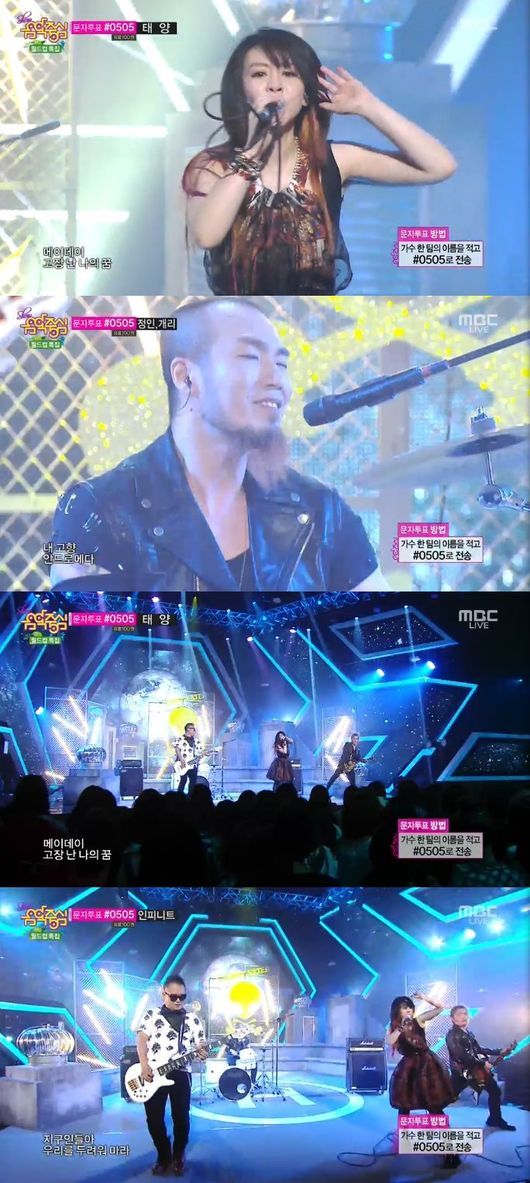 한편 이날 '쇼!음악중심'에는 플라이투더스카이, 백지영, 인피니트, 빅스, 체리필터, 제아, 전효성, 유키스, 지연, 크러시, 보이프렌드, 산이-레이나, 스윗소로우, 탑독, 엔소닉, 타히티,크로스진, 스마일지 등이 출연해 화려한 무대를 꾸몄다.
