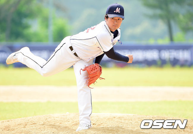 미래의료재단 선발 나형균이 힘차게 공을 뿌리고 있다.