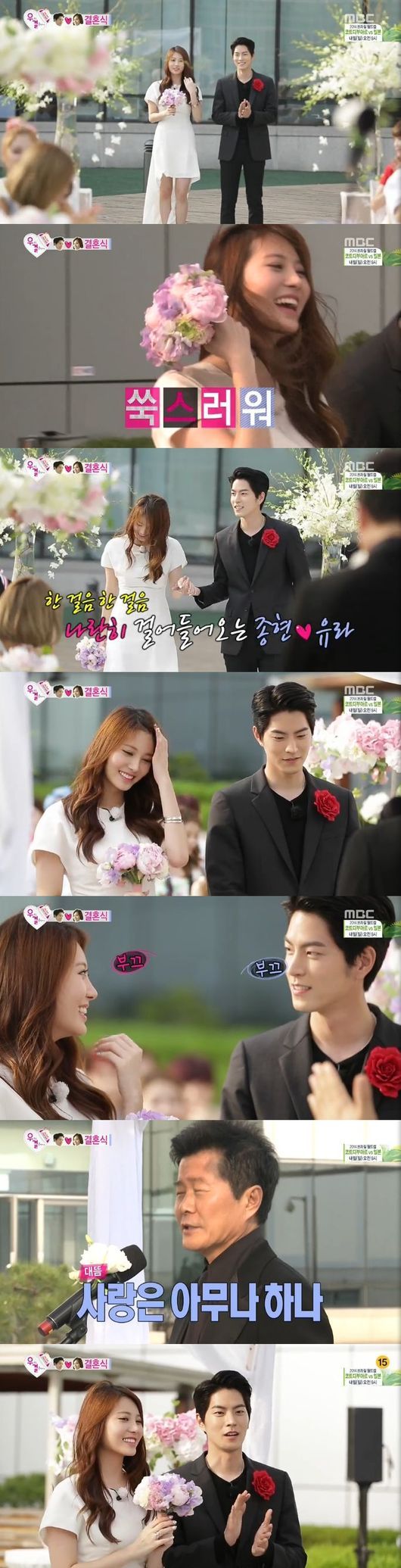 홍종현과 유라는 14일 오후 방송된 MBC 예능프로그램 '우리 결혼했어요 시즌4'(이하 '우결')에서 만난지 한 시간만에 '결혼을 하라'는 제작진의 미션을 받고 결혼식을 올렸다.