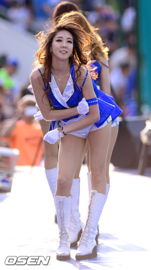 14일 오후 대구구장에서 열린 2014 한국야쿠르트 세븐 프로야구 삼성 라이온즈와 두산 베어스의 경기, 삼성 치어리더가 멋진 공연을 펼치고 있다