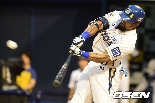 테임즈는 14일 창원 마산구장에서 열린 한화와 홈경기에 4번타자 1루수로 선발출장, 6-1로 리드한 1사 1루에서 윤근영의 5구째 몸쪽 높은 138km 직구를 퍼올려 중앙 담장을 그대로 넘어가는 비거리 130m 대형 투런 홈런을 작렬시켰다. 시즌 18호 홈런. 지난 4일 마산 넥센전 이후 열흘만의 홈런이다. 이 홈런으로 테임즈는 넥센 강정호와 함께 18호 홈런을 마크, 1위 넥센 박병호(27개)에 이어 공동 2위에 랭크됐다.