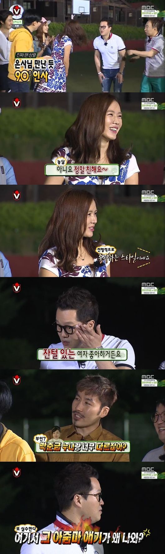 이어 "머리에 잔털이 있는 여자, 구레나룻이 있는 여자"라며 손예진이 자신의 이상형임을 얘기하던 그는 "박준금 누나랑 너무 다르다"는 노홍철의 말에 발끈하며 "여기서 그 아줌마 얘기가 왜 나와?"라고 말해 웃음을 자아냈다.