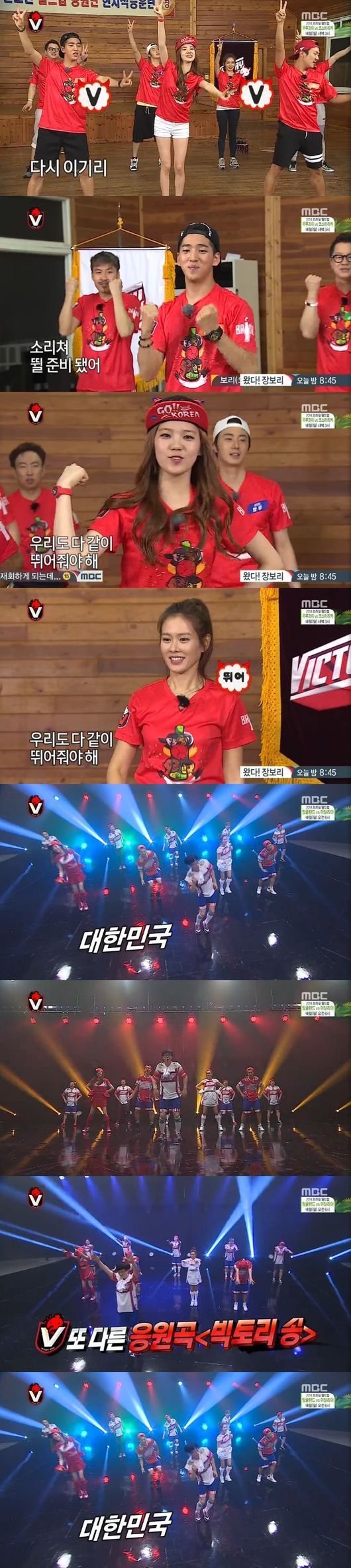 14일 방송된 MBC 예능프로그램 '무한도전'에서는 응원단 멤버들의 율동을 통해 '빅토리 송'과 '승리의 시간'이 공개됐다.
