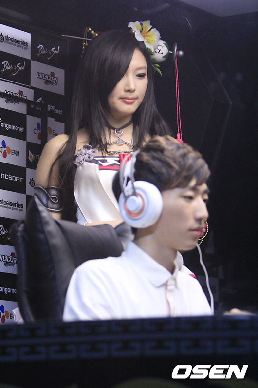14일 서울 용산 온게임넷 e스포츠 상설경기장에서 '네네치킨배 블레이드 앤 소울 비무제: 임진록'의 결승전이 열렸다. 스파이럴 캣츠 '도레미' 이혜민이 이상준을 응원하고 있다.