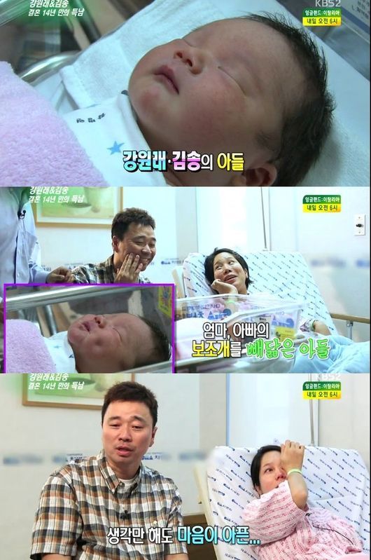 14일 방송된 KBS 2TV '연예가중계'에서는 강원래-김송 부부가 7전 8기 끝에 아들을 얻고 인터뷰에 임한 모습이 전파를 탔다.