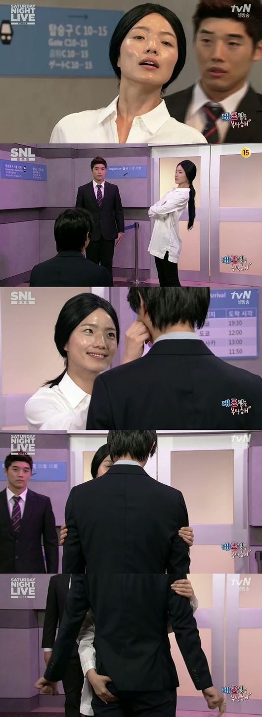 14일 오후 방송된 tvN 'SNL코리아'에서 크루 안영미는 물광 피부와 '칭찬' 대사 패러디로 드라마 '밀회' 속 김희애로 또 한 차례 변신했다.