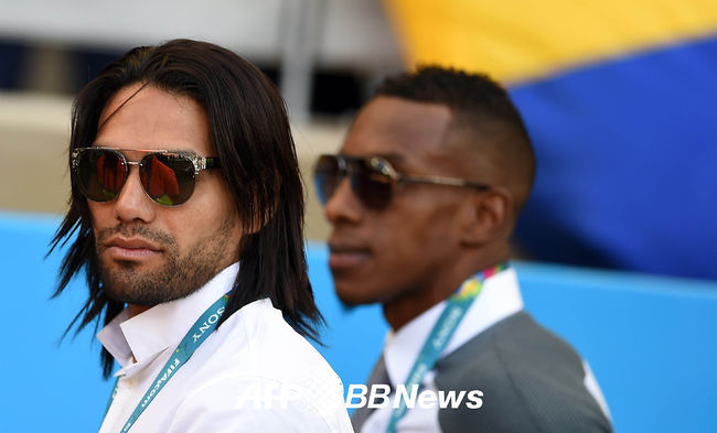 십자 인대 파열로 2014 브라질월드컵에 나서지 못한 콜롬비아 라다멜 팔카오가 경기장으로 입장하고 있다.