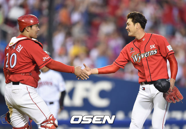 마운드에 김광현이 있었다면 홈플레이트는 87년생 포수 이재원이 지키고 있었다. 타율 4할을 향해 질주 중인 이재원은 이날 안타를 때려내며 타율 4할3푼을 유지했고 정찬헌의 공에 몸에 맞았지만 9회까지 포수 마스트를 썼다. 이 감독은 “포수 이재원이 너무 잘 이끌어줬다”며 이재원의 리드를 칭찬했다.