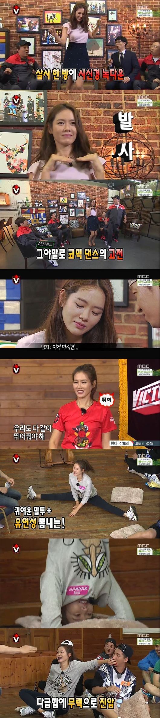 이어 손예진은 합숙 훈련에서 자신의 장기로 다리 찢기와 물그나무 서기를 보여주는 의외의 모습을 보여줬다. 퀴즈를 풀면서는 경쟁자 바로의 입을 막고 폭력을 행사(?)하는 승부욕을 불태우기도 해 눈길을 끌었다.