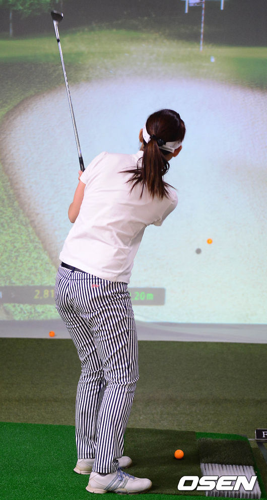조경희가 퍼팅을 마친 후 스크린을 바라보고 있다.