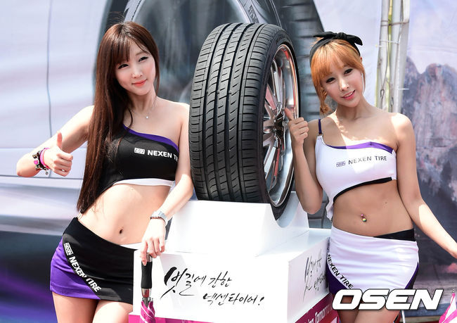 국내 최대규모의 모터 스포츠 축제 '2014 넥센타이어 스피드레이싱' 2전이 15일 영암 코리아인터내셔날서킷에서 열려 이유은 장인영이 넥센의 N' FERA(엔페라) SU1 신제품 앞에서 포토타임을 갖고 있다.