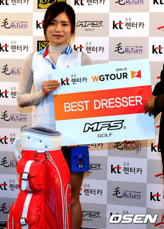2014 WGTOUR 개막전에서 베스트드레서로 선정된 강미연이 포토타임을 갖고 있다.