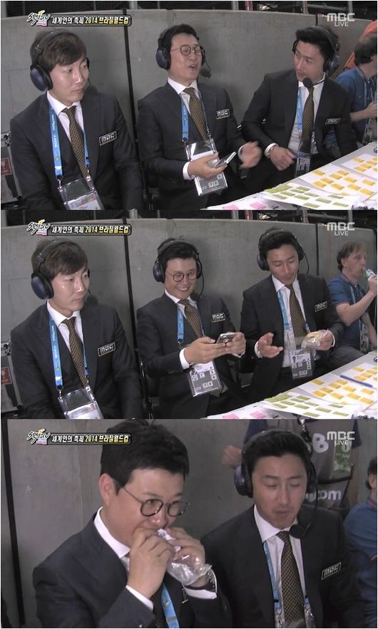 15일 방송된 MBC 연예정보프로그램 ‘섹션TV 연예통신’은 김성주, 안정환, 송종국의 중계 모습과 잠시 쉬는 사이의 모습을 깜짝 공개했다.