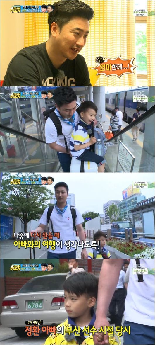 안정환과 안리환은 15일 방송된 MBC 예능프로그램 ‘일밤-아빠 어디가’에서 부산으로 이동한 후 일본으로 가는 초저가 배낭여행을 떠났다.
