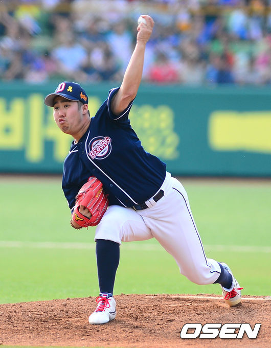 15일 오후 대구구장에서 열린 2014 한국야쿠르트 세븐 프로야구 삼성 라이온즈와 두산 베어스의 경기,1회말 두산 선발투수 유희관이 역투하고 있다
