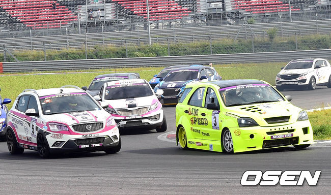 국내 최대규모의 모터 스포츠 축제 '2014 넥센타이어 스피드레이싱' 2전이 15일 영암 코리아인터내셔날서킷에서 열려 엔페라 R300 참가 차량들이 힘차게 질주하고 있다.