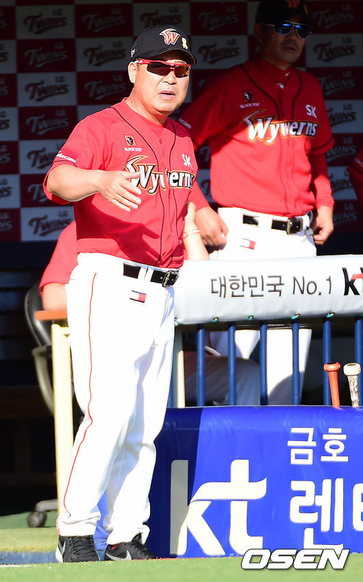 2회말 LG 공격 1사 1루 상황 조쉬벨 타석 때 SK 이만수 감독이 볼판정에 대해 어필하고 있다.