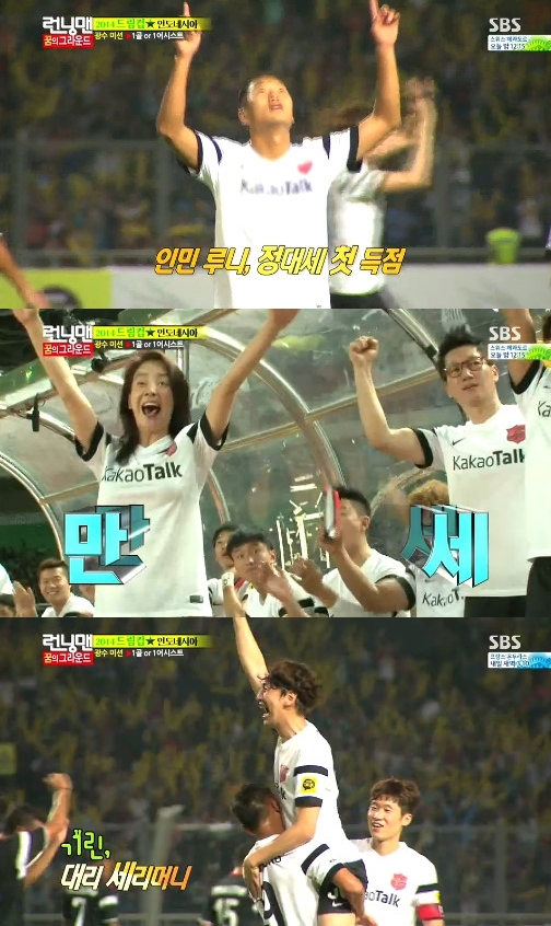 정대세는 15일 오후 방송된 SBS 예능프로그램 '일요일이 좋다-런닝맨(이하 '런닝맨')'에서 열린 ‘드림컵 in 인도네시아’에서 첫 골을 성공시켰다.