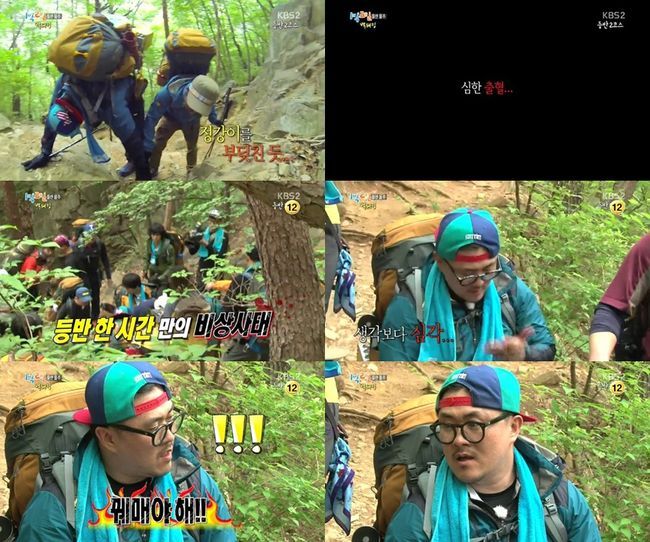 이날 방송에서 데프콘은 무거운 배낭을 맨 채 등산을 하던 중, 발을 헛디디며 바위에 정강이를 찧는 부상을 당했다.