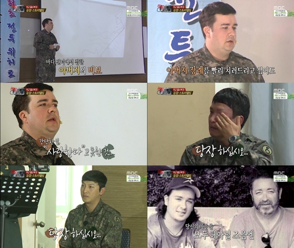 샘 해밍턴은 15일 오후 방송된 MBC 예능프로그램 '일밤-진짜 사나이'에서 전우들과 함께 스토리텔링 대회에 참가했다.