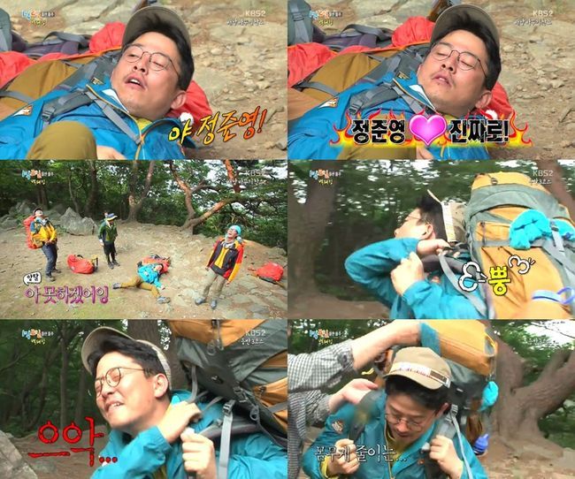 개그맨 김준호가 어마어마한 배낭 무게에 방귀를 뀌고 말았다.