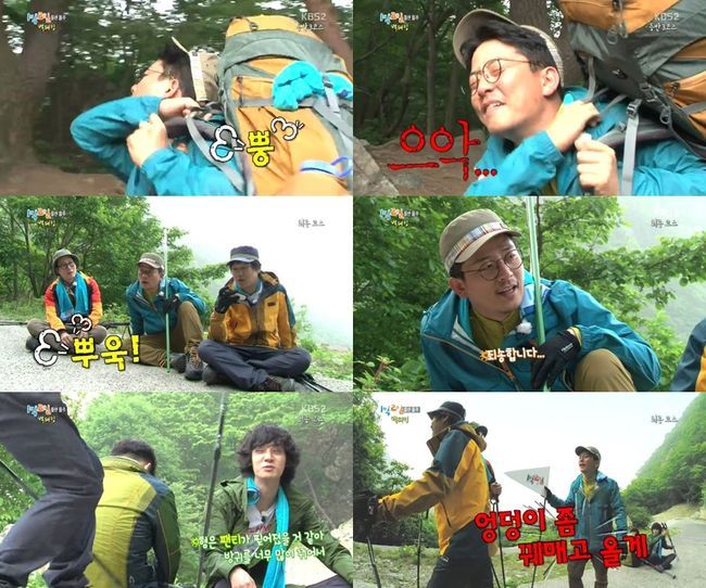 이날 방송에서 김준호는 자신이 들고 오던 배낭 보다 훨씬 무거운 가방을 고르는 불운을 맞게 됐다. 이에 바닥에 누워 있던 그는 가방을 힘들게 올렸고 그러던 중 방귀를 뀌어 멤버들을 폭소케 했다.