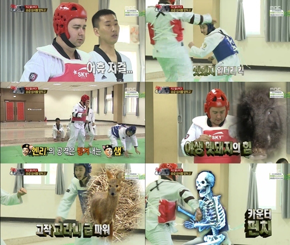 '진짜 사나이' 샘 해밍턴이 강력한 펀치로 헨리와의 태권도 대결에서 승리했다.