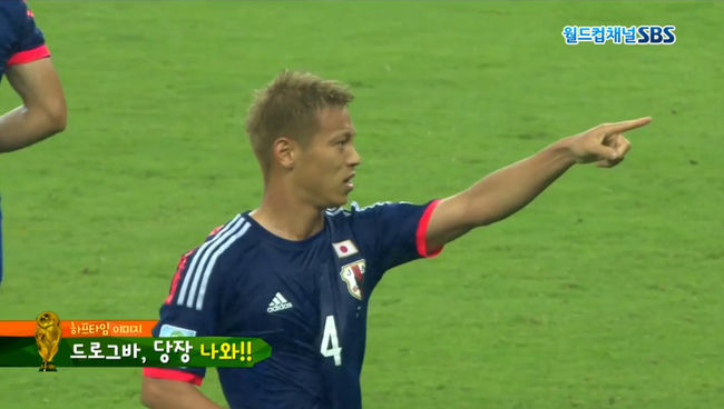 여기에다 SBS는 이날 경기의 공 패스패턴과 선수들의 공격방향에 대한 설명을 CG로 담아내며 축구중계에 대한 전문성을 더했다. 특히, 전반 16분 골을 넣은 일본선수 혼다 다이스케의 손가락 모션을 ‘하프타임 이미지’에 사용, “드록바 당장 나와!”라는 자막을 선보여 네티즌들의 눈을 사로잡기도 했다.