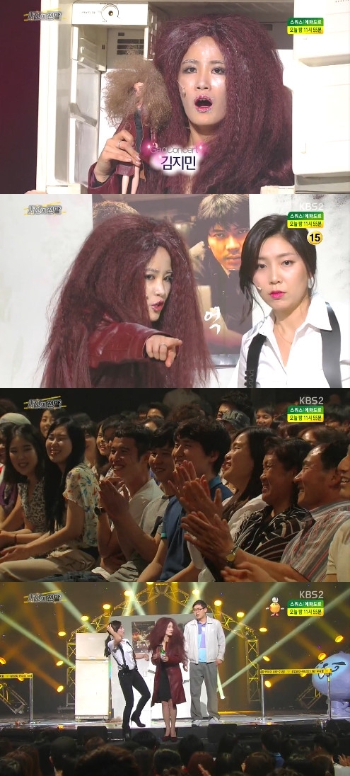이날 “내가 다 봤어요”라고 의미심장하게 말하며 냉장고에서 등장한 김지민. 그는 “나 차가운 도시여자. 차도녀야”라고 자신을 소개한 후, 어린이들은 절대 따라하지마라고 신신당부해 웃음을 자아냈다.