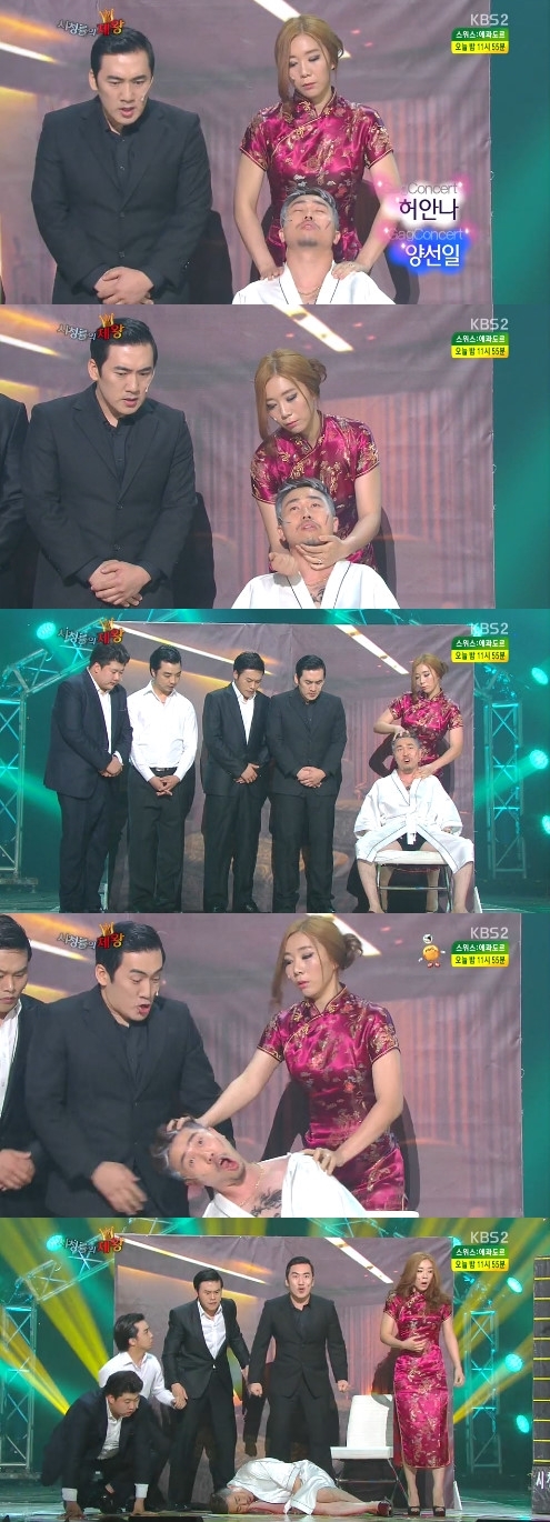 이날 ‘대학로 로맨스’에서 스모 선수로 분장해 웃음을 선사한 허안나. 그는 이후 ‘시청률의 제왕’에서 치파오를 입고 등장해 극과 극 매력을 선보였다.