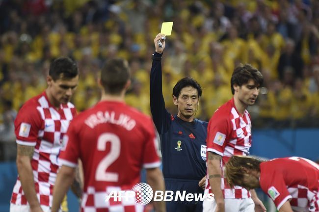 니시무라 주심은 지난 13일(이하 한국시간) 브라질과 크로아티아와의 브라질 월드컵 개막전에서 1-1로 맞선 후반 26분 브라질에 페널티킥을 줘 논란을 일으켰다. 크로아티아 측면 왼쪽에서 올라온 공을 경합하는 과정에서 데얀 로브렌(크로아티아)이 등을 지고 선 프레드(브라질)를 잡아 당겼다는 것이었다. 니시무라 주심은 페널티킥과 함께 로브렌에게 경고까지 꺼내 들었다.