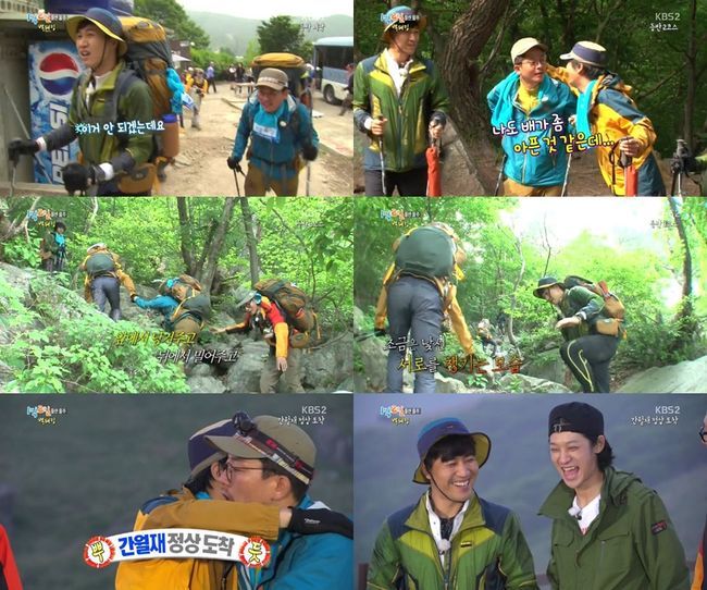 지난 14일 오후 방송된 KBS 2TV 예능프로그램 '해피선데이-1박 2일(이하 '1박 2일')'에서는 무거운 배낭을 멘 채 산을 올라도 장난꾸러기 멤버들이 있어 즐겁게 산을 오르는 '1박 2일' 멤버들의 모습이 전파를 탔다.
