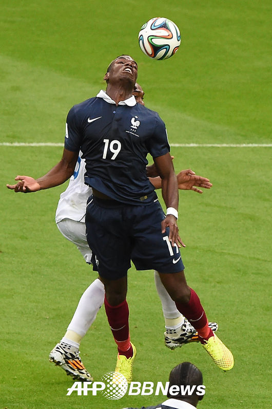 전반 프랑스 폴 포그바가 윌슨 팔라시오스의 반칙에 당하고 있다.