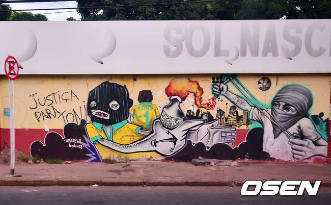 쿠이아바 시내에 월드컵 반대 시위를 표현한 그래피디가 눈에 띈다.