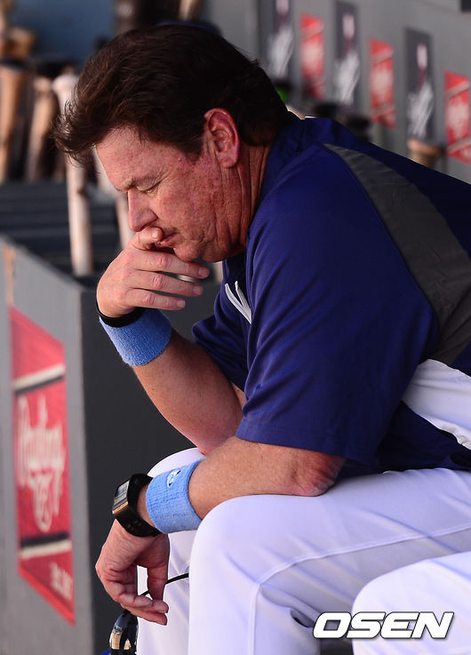 LA 다저스 허니컷 코치가 더그아웃에 앉아 생각에 잠겨있다./youngrae@osen.co.kr