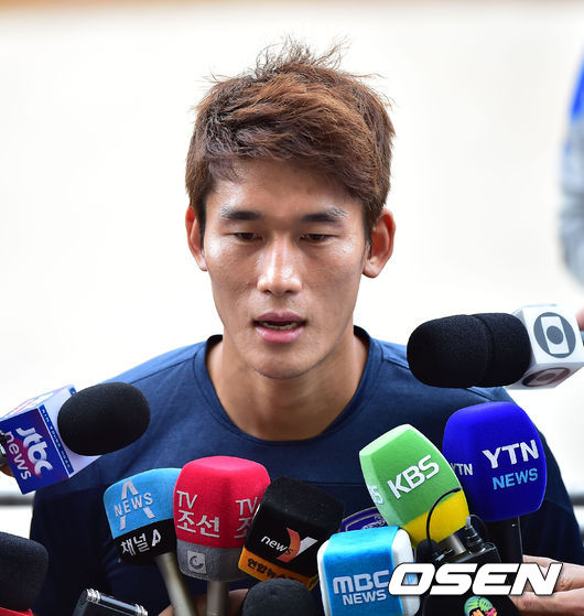 16일 오후(이하 한국시간) 홍명보감독이 이끄는 한국 축구대표팀이 2014 브라질 월드컵 조별리그 첫 경기가 열리는 쿠이아바로 이동해 마토 그로수 대학교 내에 위치한 훈련장에서 첫 훈련을 가졌다. 이용이 인터뷰를 하고 있다.