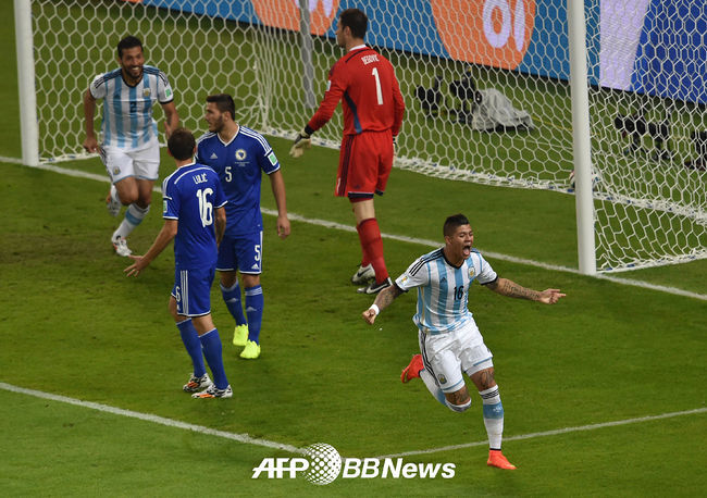 전반 아르헨티나 마르코스 로호가 보스니아의 자책골때 환호하고 있다. /photo@osen.co.kr