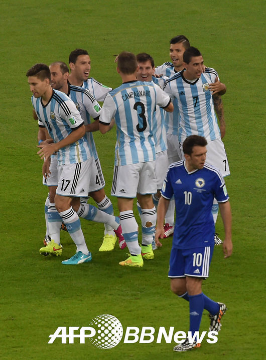 전반 보스니아의 자책골때 아르헨티나 선수들이 환호하고 있다. /photo@osen.co.kr