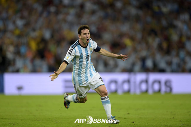 [OSEN=사진팀] 아르헨티나가 636분 만에 득점을 신고한 리오넬 메시(27, 바르셀로나)의 결승골에 힘입어 보스니아를 꺾고 조별리그 첫 승리를 거뒀다.