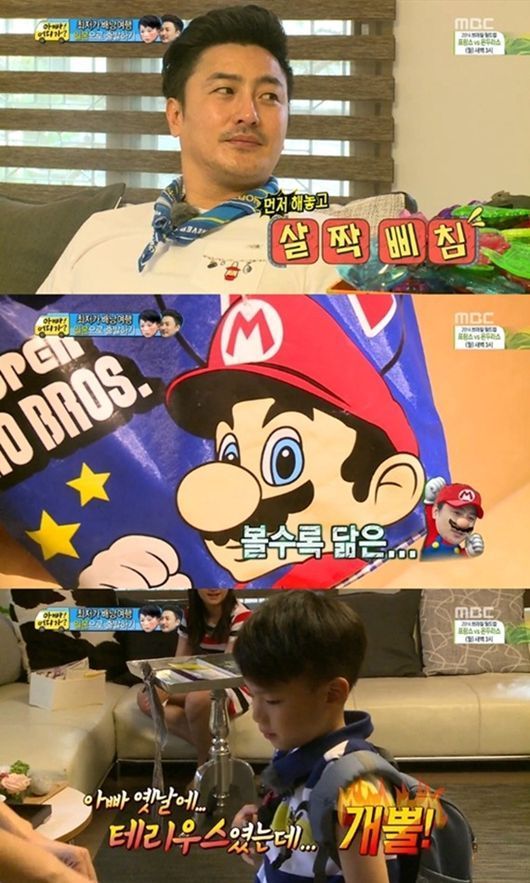 특히 이혜원은 리환에게 슈퍼마리오 캐릭터가 그려진 가방을 챙겨주며 "이거 아빠야. 뚱뚱해져서 이렇게 됐어"라며 "옛날엔 테리우스였는데 개뿔"이라고 덧붙여 안정환을 당황케 만들었다.