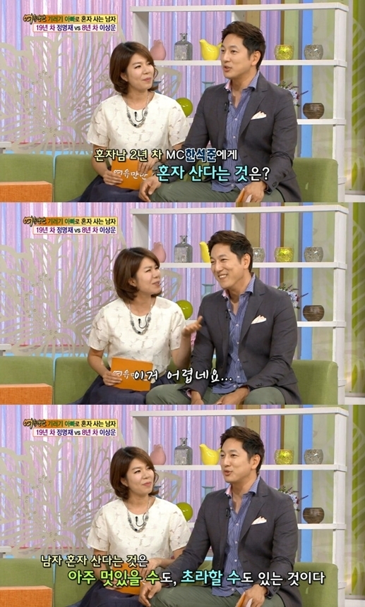 한석준은 16일 오전 방송된 KBS 2TV 예능프로그램 '여유만만'에서 "남자 혼자 산다는 것"이라는 질문에 "이거 어렵다"라며 "아주 멋있을 수도, 아주 초라할 수도 있다"고 입을 뗐다.