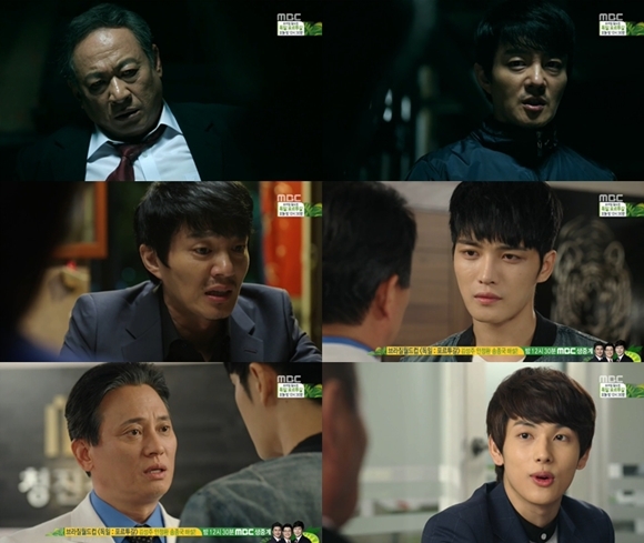 16일 오후 방송된 MBC 월화드라마 '트라이앵글'(극본 최완규, 연출 유철용 최정규) 13회에서는 장동수(이범수 분)와 허영달(김재중 분)이 점점 윤양하(임시완 분)와 윤회장(김병기 분)을 압박하는 모습이 그려졌다.