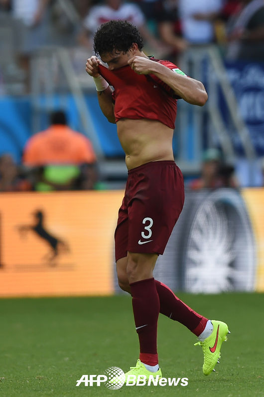 포르투갈은 파트리시우 골키퍼를 비롯, 포백은 예상대로 왼쪽부터 코엔트랑, 알베스, 페페, 페레이라가 이뤘다. 허리는 벨로수가 홀딩 미드필더로 다소 처지고 그 앞선에 무티뉴와 메이렐레스가 위치했다. 양쪽 날개는 예상대로 호날두와 나니가 출전하고 전방에는 알메이다가 위치한다./ photo@osen.co.kr < 사진 > ⓒAFPBBNews = News1