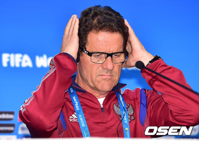 [OSEN=쿠이아바 (브라질), 민경훈기자] 17일(이하 한국시간) 홍명보감독이 이끄는 한국 축구대표팀이 2014 브라질 월드컵 조별리그 첫 경기가 열리는 쿠이아바의 아레나 판타날에서 러시아 전을 하루 앞두고 공식 훈련을 가질 예정인 가운데 아레나 판타날 경기장에서 러시아 카펠로 감독이 기자회견중 생각에 잠겨있다.