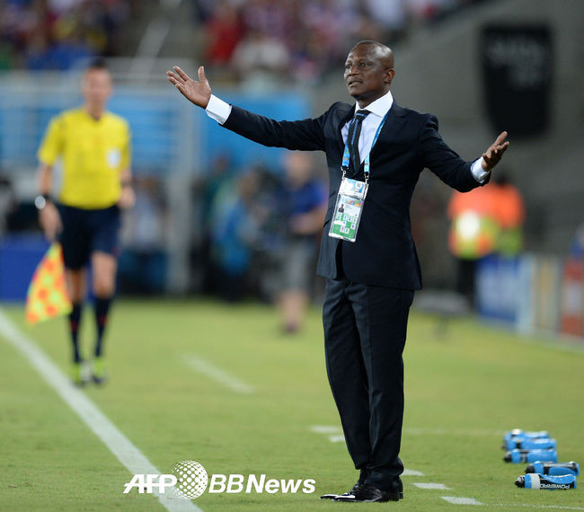 전반 가나 제임스 아피아 감독이 아쉬운 표정을 짓고 있다.