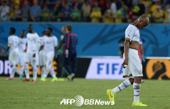 경기후 가나 아예우가 패배를 아쉬워하고 있다./ photo@osen.co.kr < 사진 > ⓒAFPBBNews = News1