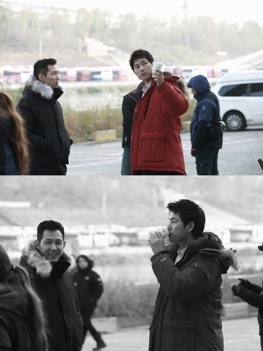 이정재가 정우성 주연 영화 '신의 한 수' 촬영장을 깜짝 방문한 것. 정우성과 이정재는 한국 영화계 대표 절친. 이정재는 지난 겨울 촬영 현장을 깜짝 방문, 정우성을 응원했다. 이날 이정재는 오랜만에 선보이는 정우성의 정통 액션을 응원하기 위해 현장을 찾아 오랜시간 이야기를 나누고 떠났다는 전언.